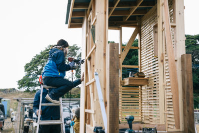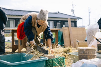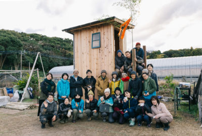 小屋づくりから、土壁作り、雨水利用や排水浄化のシステムなど、資源循環の知恵が詰まったコンポストトイレ作りを学びに、コンポストのユーザーさんはじめたくさんの方が参加してくださり、寒空の下、4日間(講師の方は6日間)のワークショップ形式でゼロから作り上げました。
