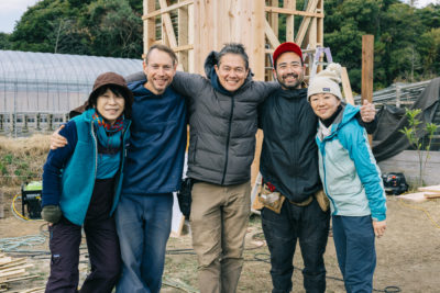 コンポストトイレの制作を指導してくれたのは、千葉でパーマカルチャーシステム作りの研究と実践を続けるパーマカルチャーデザイナー講師のフィル・キャッシュマンさんと、佐官職人のカイル・ホルツヒューターさん、大工の鈴木啓太さん。