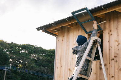 窓を取り付けて、完成に近づいていく