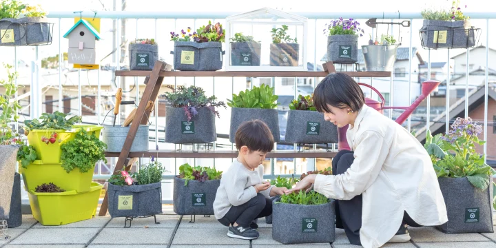 コンポストとは、「畑の近くにある大規模なもの」というイメージが強いかもしれません。LFCコンポストは、都会のベランダでもコンポストを気軽に始められる「バッグ型のコンポスト」を用意しています。コンパクトな作りのため、置く場所を選ばず、親子で一緒にコンポストを始めやすい点も特徴です。