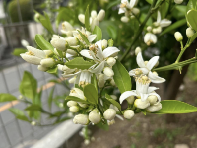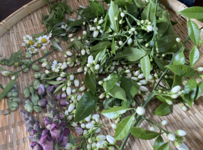 庭や畑、里山に行くとハーブや柑橘類の花、蓬やスギナ、ドクダミなどの野草が目につき、オフィスでは庭のオレンジやレモンの木が蕾をたくさんつけ、良い香りで迎えてくれます。