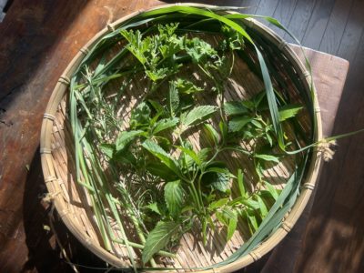 ・ペパーミント風呂(ミントをガーゼに包む)で涼を取る