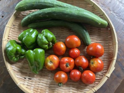 堆肥の栄養と、大地や太陽の力、水の恵みをたっぷり浴びて育つ夏野菜たち。