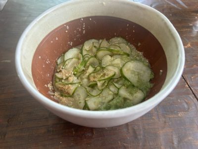 堆肥名人でもあり料理名人でもある、のぶばあの「きゅうりがき」は天下一品です。