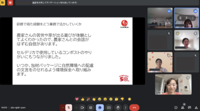 本企画は、メインスポンサーとして、石井食品株式会社(本社:千葉県船橋市本町2-7-17、代表取締役社長執行役員:石井 智康)、コーポレートスポンサーとして、アクサ・ホールディングス・ジャパン株式会社(本社:東京都港区白金1‐17‐3 NBFプラチナタワー、代表取締役社長兼CEO:安渕 聖司)に参画いただき、企画への協賛、従業員のコンポスト利用促進、コンポストについてより知識を深めるための社員とその家族向けの特別講座の開催などを通じて、循環型社会の実現に向けたアクションに協働して取り組んでまいりました。また、石井食品株式会社では、社員研修の一環として社員数名がLFCコンポストに取り組みました。コンポストを家庭に導入したことでどのような学びや変化があったのか、今後どのように仕事に活かせそうかなどを参加した社員から同社主催の報告会で報告いただきました。